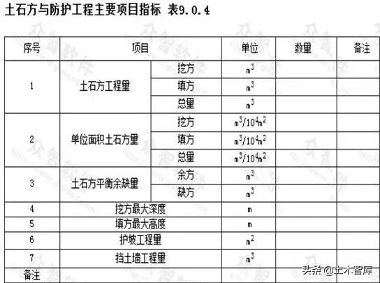 八、土石方與防護工程主要項目指標: