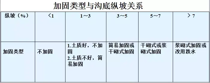 5.急流槽:在陡坡或深溝地段設(shè)置的坡度較陡、水流不離開槽底的溝槽稱作急流槽。急流槽的作用是在較短的距離內(nèi)以溝渠的方式引排水流、降低水頭,進而防止沖刷(可用于比跌水更陡的坡度,可達600)。