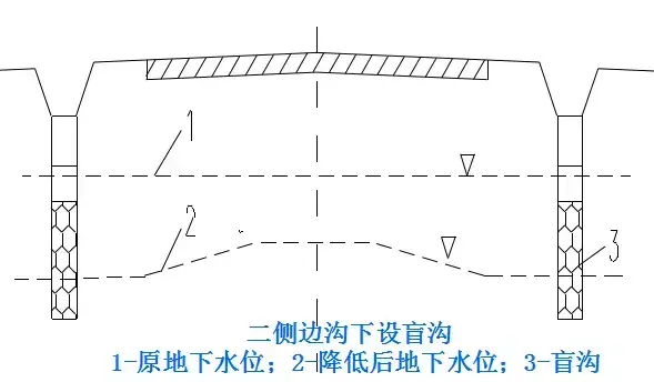 (1)路線高度與原地面相仿,排水困難,距地面有滲透性土層。