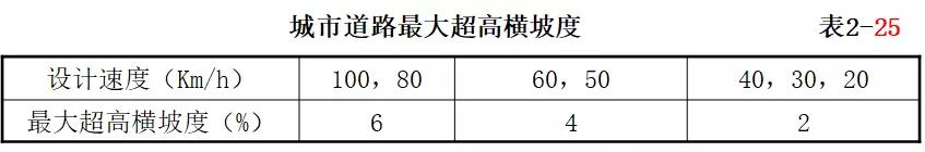 當曲線半徑小于表2-20或表2-23中規定的不設超高最小半徑時,均應設置超高