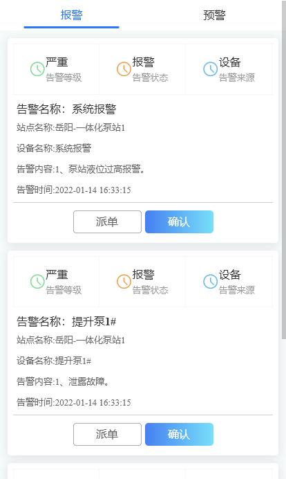 根據中控采集數據如果測壓點低于臨界值,自動發出報警。