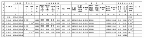 智城一路為避開(kāi)K1+110處的民宅,采用了壓縮人行道、非機(jī)動(dòng)車(chē)道及側(cè)綠化帶的方法,為避開(kāi)K0+660處建筑物、K1+400~K1+900處茂名第一中學(xué)及茂名職業(yè)技術(shù)學(xué)院圍墻、K2+380~K2+580處村莊、K3+500~K3+800處村莊、K4+200~K4+300處村莊、接順K4+930處現(xiàn)狀新湖路及終點(diǎn)處325國(guó)道預(yù)留路口位置,共設(shè)置了7個(gè)轉(zhuǎn)點(diǎn),具體的平曲線參數(shù)如下表所示: